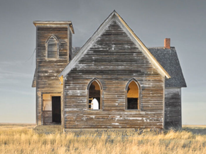 Follow along as I imagine the artist’s process: There is an awareness and responsiveness that he must practice. For the series of photographs that this church is a part of, certain places with deteriorating physical structures called out to him. He imaginatively “saw” those places and structures. I might suggest he saw aspects of their lives, their history, something of their spirits, souls, or hearts, or those of the people who inhabited them. Simultaneously, creatively, he began to attune himself to what they touched in him so that he then used his art to try to capture and evoke something of those spirits for and in others. There then is an interaction–or, over time, a relationship that develops–among the soul of the place, his own heart, and how some viewers see and are touched.